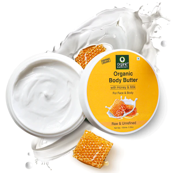 Organic Harvest Body Butter Cream with Honey & Milk is a luxurious and hydrating skincare product. Enriched with honey and milk, it provides deep moisturization and skin-soothing benefits. Honey locks in moisture, while milk’s lactic acid gently exfoliates, leaving skin smooth. This creamy body butter pampers and nourishes, promoting overall skin health.