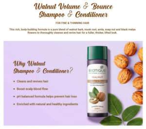 Purchase Biotique Walnut Bark Volumizing Shampoo for Fine & Thinning Hair on Faasha.com and experience the benefits of this herbal shampoo. Enjoy the fuller and thicker hair with the natural goodness of organic, vegan, and herbal ingredients.