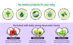 Our Dabur Baby Gentle Nourishing Shampoo features a pH-neutral formula that matches the delicate skin of babies. This ensures a gentle and safe experience during each use. We prioritize your baby’s well-being and have carefully selected baby-loving Ayurvedic herbs for their nourishing properties.