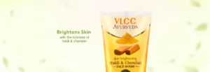 Experience the power of Haldi (Turmeric) and Chandan (Sandalwood) in VLCC’s Ayurvedic medicinal proprietary skin brightening face wash. This soap-free formulation is designed to help lighten your skin tone and correct blemishes. Enriched with Chamomile oil, Yastimadhu extract, and Haridra extract, it works to fade dark spots and pigmentation, leaving your face with a radiant glow. Plus, it’s free from parabens and synthetic colorants.